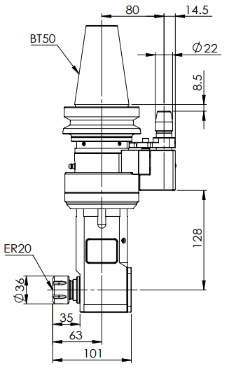 ◎?BT50-ER20 90° Angle Head-Longer (AHD Type)