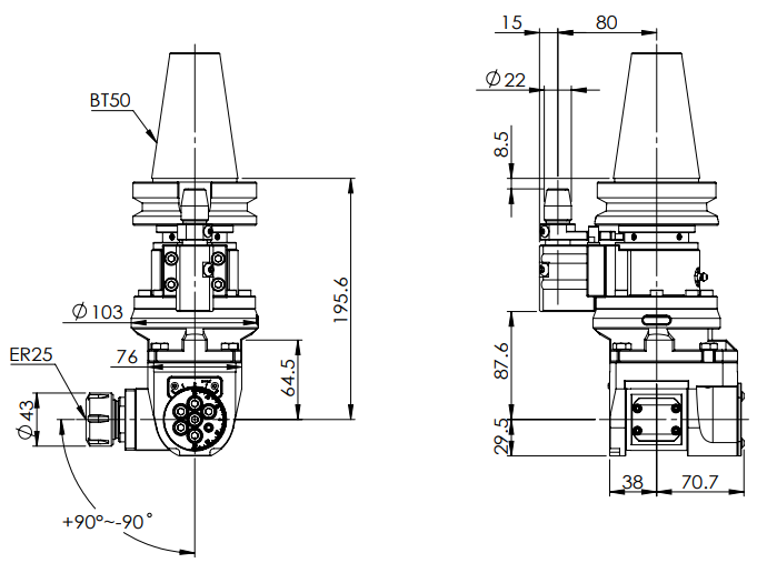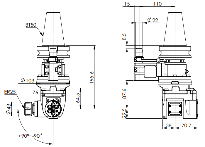 AHG-BT50-A1 萬向角度頭
