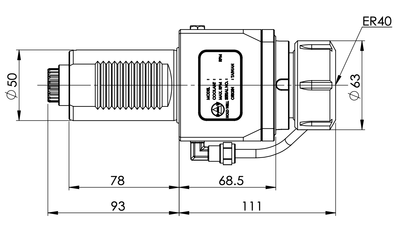 VDI50-5480-ER40 Axial Driven Tool Holder