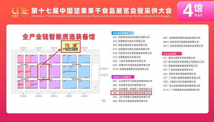 此次展會(huì)初次設(shè)立“全產(chǎn)業(yè)鏈智能質(zhì)造裝備館”,并將該館設(shè)在4號(hào)展館。全產(chǎn)業(yè)鏈智能質(zhì)造裝備館是本屆展會(huì)中代表堅(jiān)果果干行業(yè)裝備風(fēng)向標(biāo)的旗艦館,該館匯集了預(yù)處理設(shè)備、熟制加工設(shè)備、包裝設(shè)備三大展區(qū),覆蓋行業(yè)全產(chǎn)業(yè)鏈,全方位展示先進(jìn)技術(shù)、高端設(shè)備、智能系統(tǒng)、過硬質(zhì)量及應(yīng)用效果,為食品企業(yè)提供一站式裝備應(yīng)用解決方案。