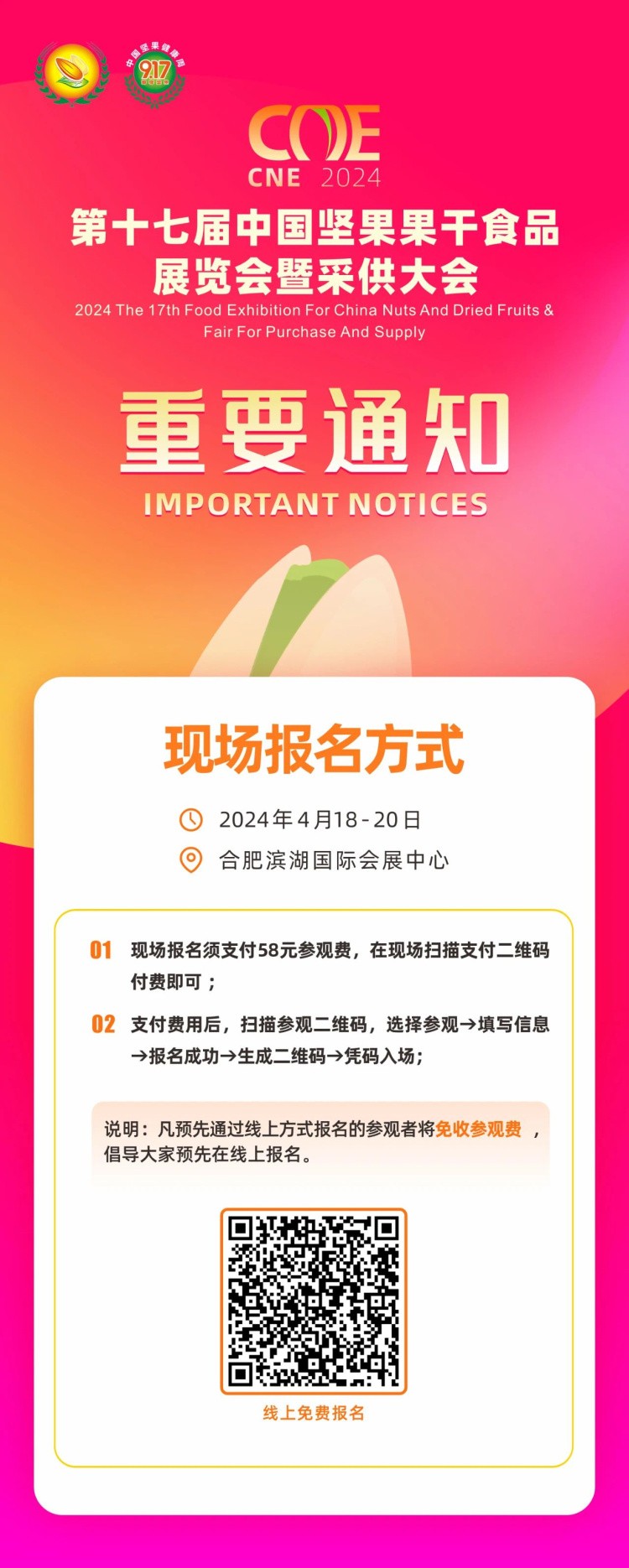 4月18-20日,第十七屆中國(guó)堅(jiān)果炒貨干果果干食品展覽會(huì)暨采供大會(huì)將在合肥濱湖國(guó)際會(huì)展中心盛大開幕!